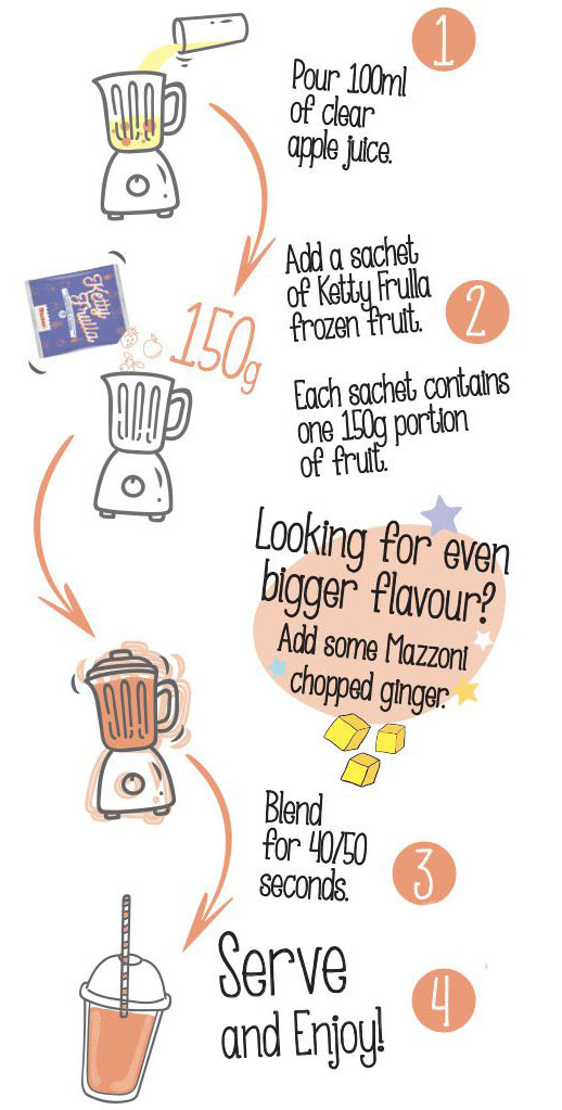 Ketty Frulla smoothies packs are well selected and portioned with different fruits. They are cut into pieces and packed in 150g frozen and ready to be used.